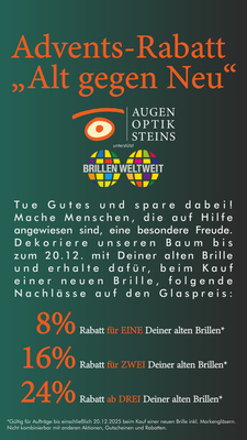 Unsere Advents-Aktion für alle, die gerne was Gutes tun möchten, zu Hause ihre Schubladen aufräumen wollen und dabei noch ein ordentliches Schnäppchen beim Brillenkauf machen wollen!